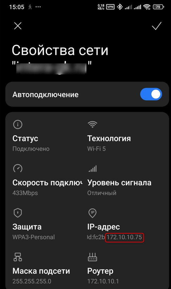 7. Если ΠΎΡ‚ΠΎΠ±Ρ€Π°Π·ΠΈΠ»Π°ΡΡŒ Ρ‚ΠΎ ΠΎΠΊ.Π’Π΅ΠΏΠ΅Ρ€ΡŒ Π½Π°Π΄ΠΎ ΡƒΠ·Π½Π°Ρ‚ΡŒ IP адрСс нашСго Android смартфона