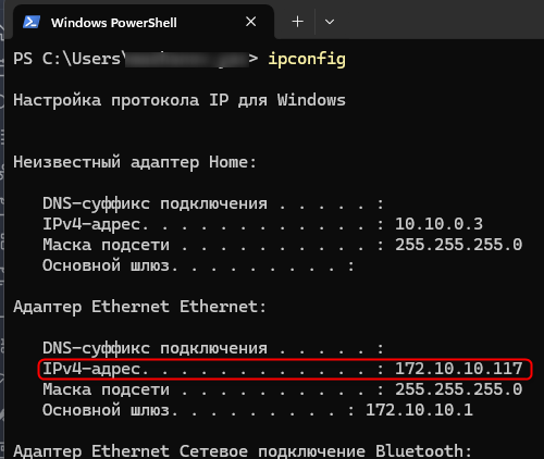9. ΠŸΡ€ΠΎΠ±Π΅Π³Π°ΡŽΡ‰Π΅ΠΉ строкой ΠΌΠΎΠ³ΡƒΡ‚ Π±Ρ‹Ρ‚ΡŒ 2 IP Π½Π°ΠΌ Π½ΡƒΠΆΠ΅Π½ IPv4 Π² ΠΌΠΎΡ‘ΠΌ случаС это 172.10.10.75 ЗаписываСм Π΅Π³ΠΎ ΠΈΠ»ΠΈ Π·Π°ΠΏΠΎΠΌΠΈΠ½Π°Π΅ΠΌ, Π΅Π³ΠΎ Π½ΡƒΠΆΠ½ΠΎ Π±ΡƒΠ΄Π΅Ρ‚ ΡƒΠΊΠ°Π·Π°Ρ‚ΡŒ Π² Lampa Π² Ρ€Π°Π·Π΄Π΅Π»Π΅ адрСс TorrServer